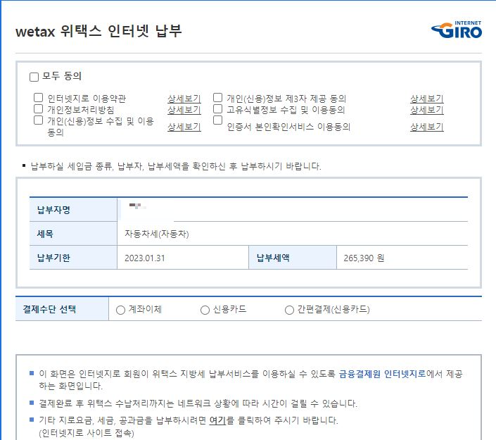 자동차세를 1.16~1.31 운용 기간동안 선납하면 세금 할인을 받을 수 있습니다.