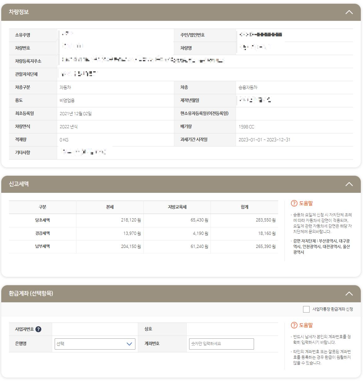 환급계좌 입력하고 즉시납부를 누르세요.