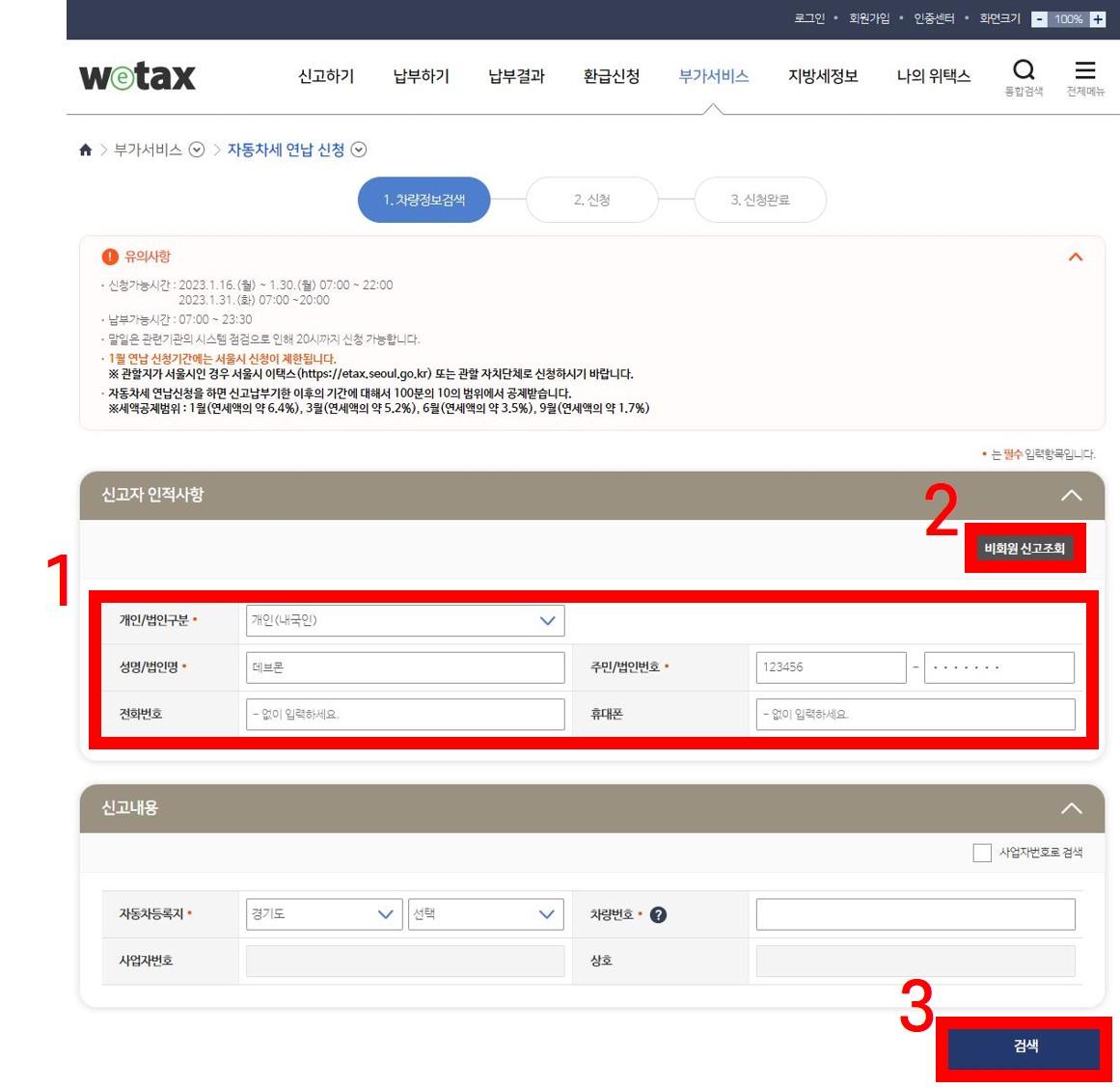 2) 자동차세연납신청