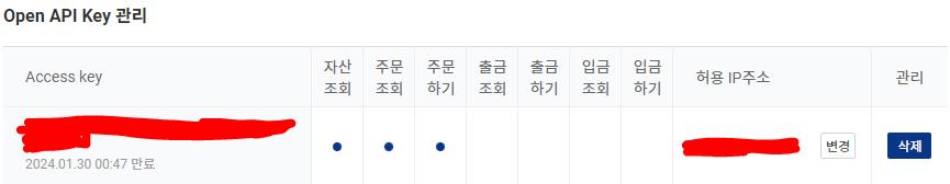 혹시 모를 해킹의 우려를 방지하기 내 IP 등록과 입출금은 체크하지 않았다.