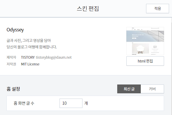 해결 방법은 블로그 관리자 페이지에 접속해서 (https://devmonster.tistory.com/manage)